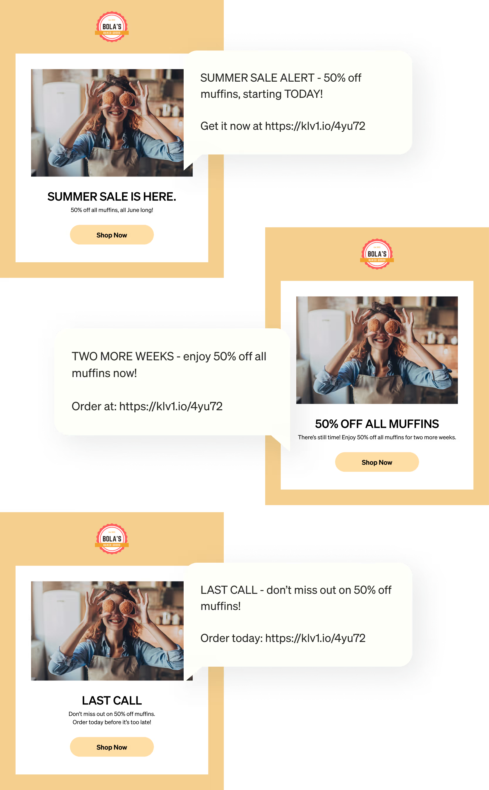 The more often your subscribers see your message, the more important they’ll know the event or opportunity is, increasing the likelihood of engagement. For your largest marketing moments and promotions, send major marketing messages together through both channels to make sure your subscribers see your messages.