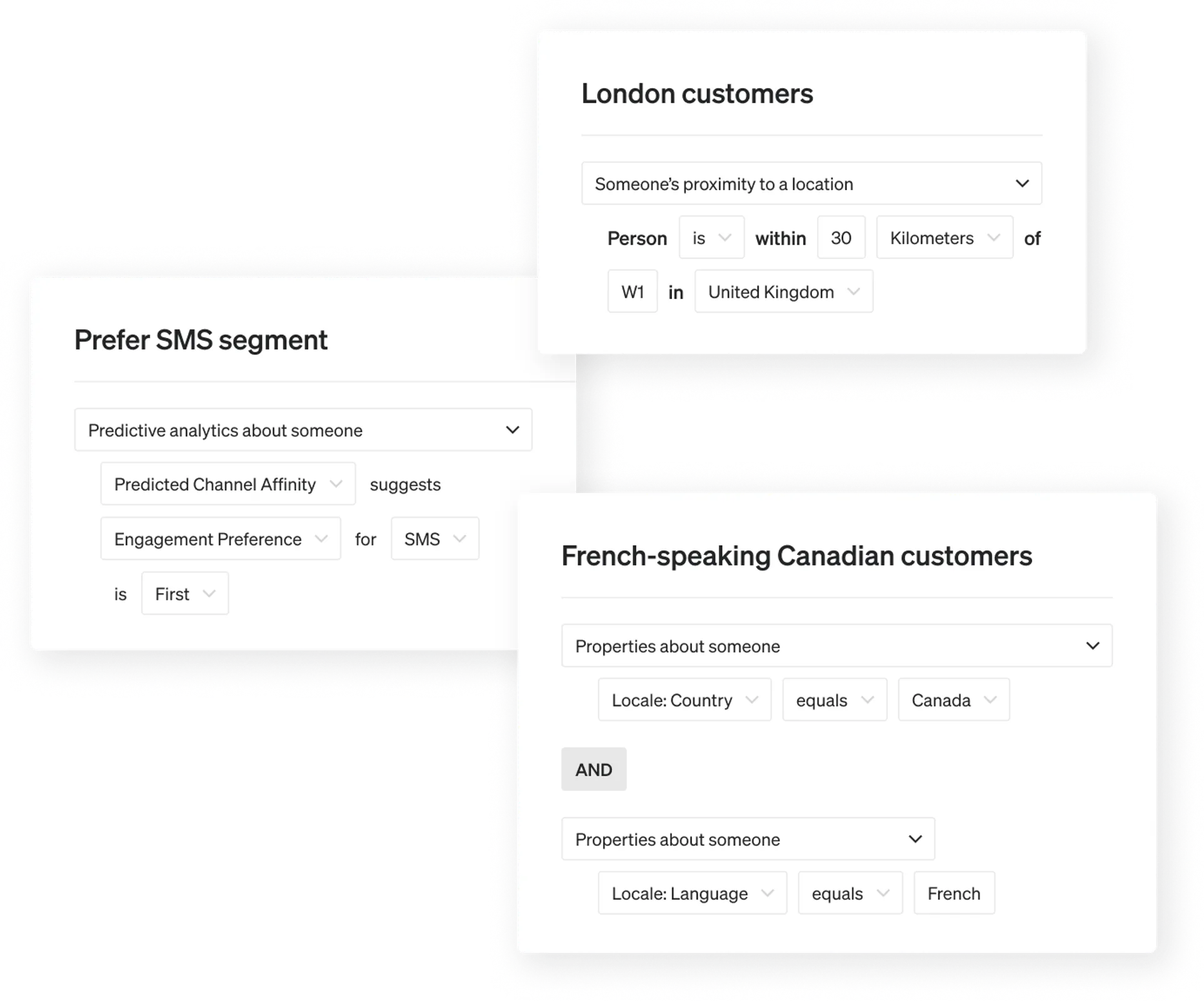 - Targeting customers who speak a certain language: Countries often have multiple languages, like Canada with English and French-speaking provinces. Create language-based segments to send targeted campaigns, such as reaching French-speaking Canadians for International Francophonie Day.