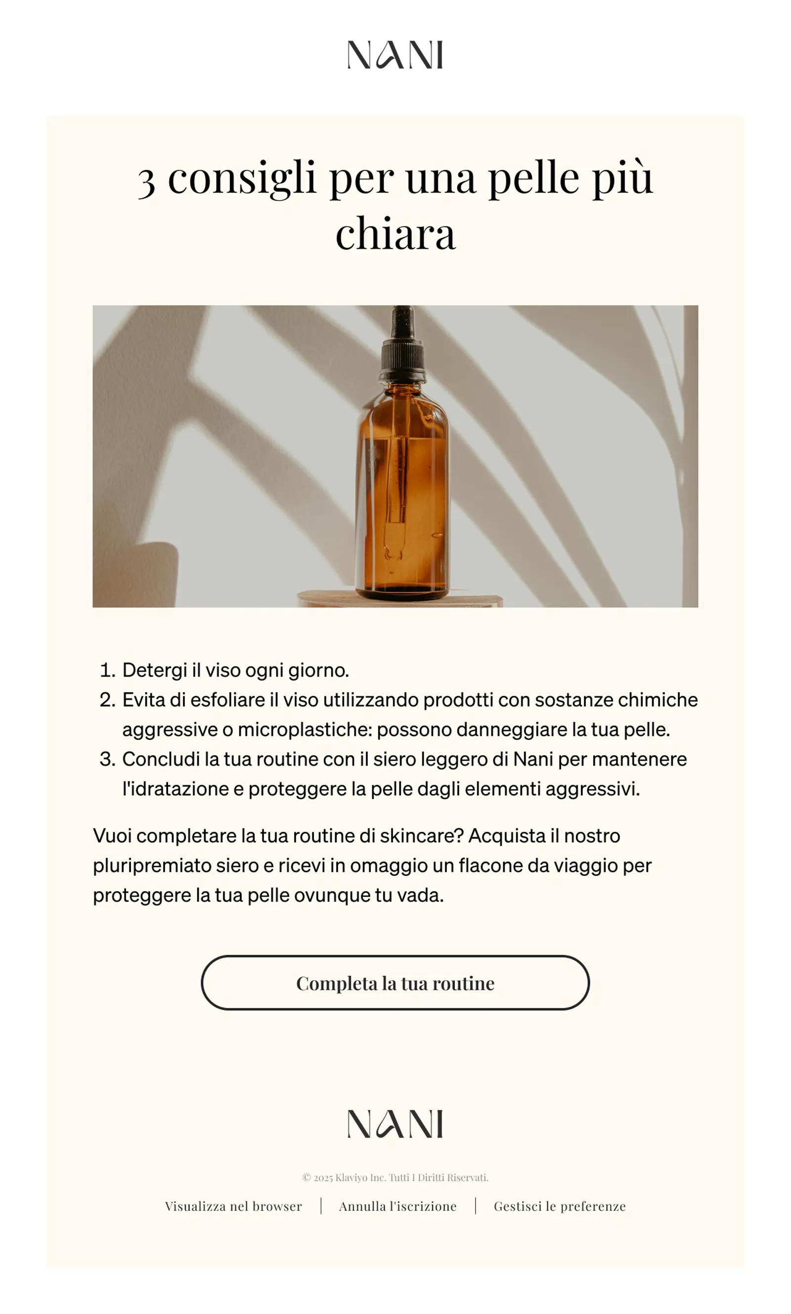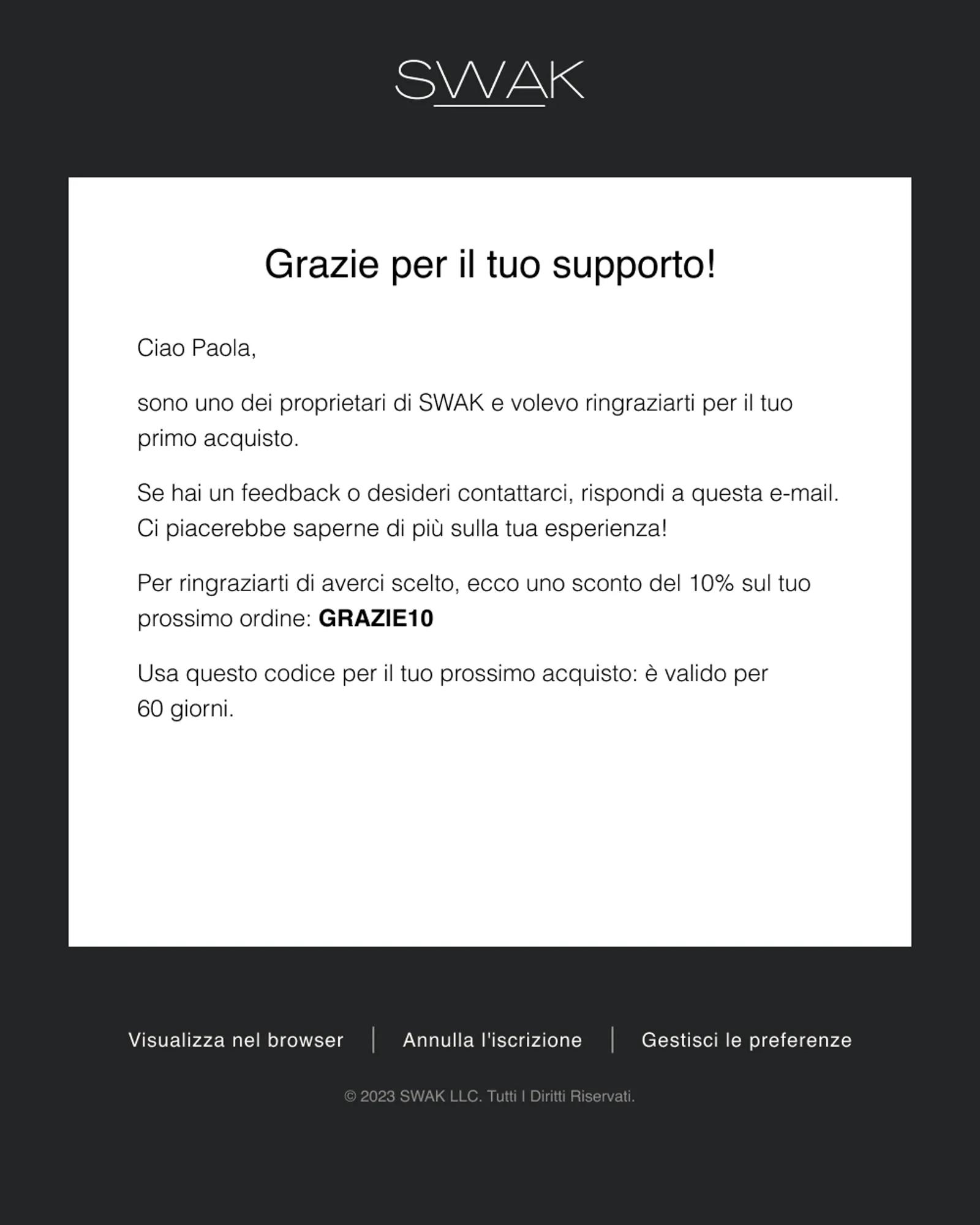Ti consigliamo anche di inserire un link di annullamento dell'iscrizione o di gestione delle preferenze ben visibile in fondo alle e-mail.