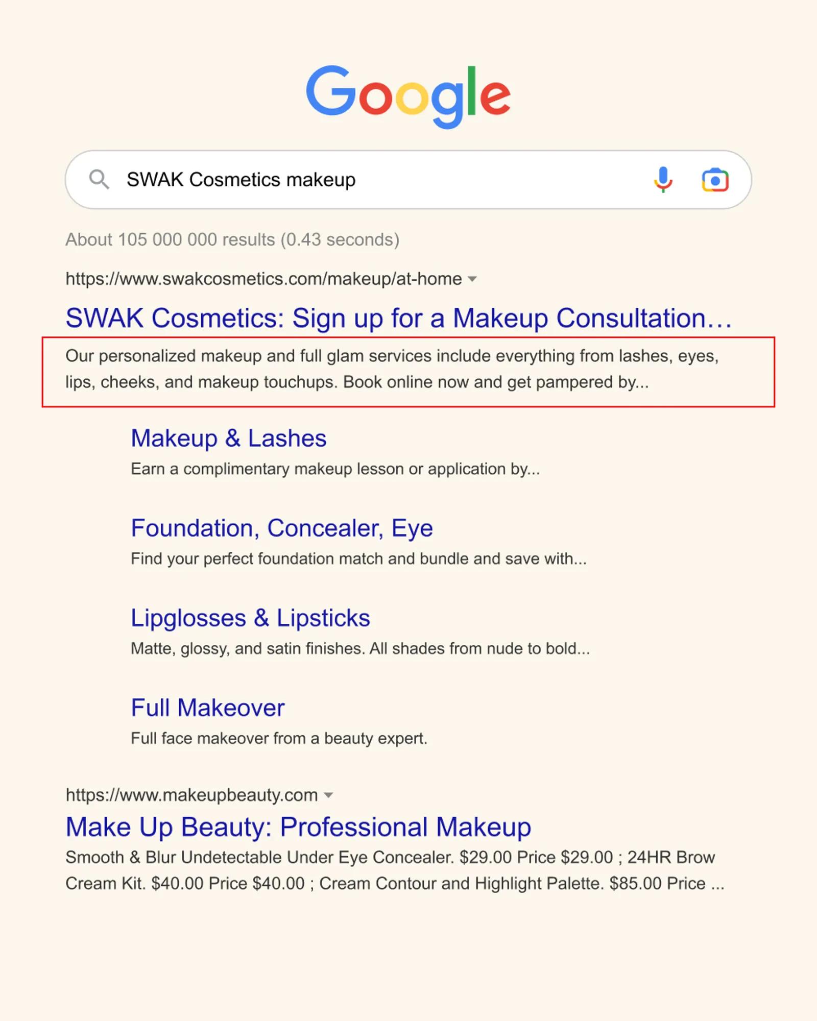 This lives below the title tag and is the first impression that a consumer has when they search for content and see your brand appear in results. They’ll read this content to better understand what your brand or product is and if it is the right fit for them.