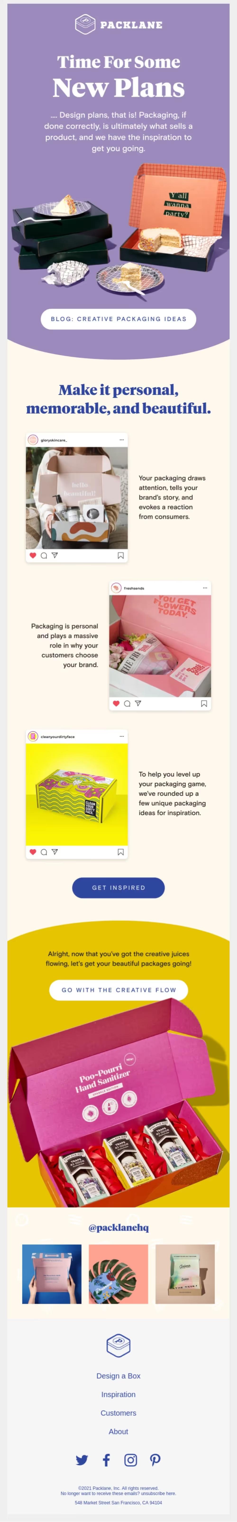 Certaines marques préfèrent envoyer une newsletter mensuelle, tandis que d’autres ont assez de matière pour communiquer toutes les deux semaines. Si la vôtre publie fréquemment sur son blog, vous pouvez utiliser les billets de blog en tant que pilier de message à part entière.