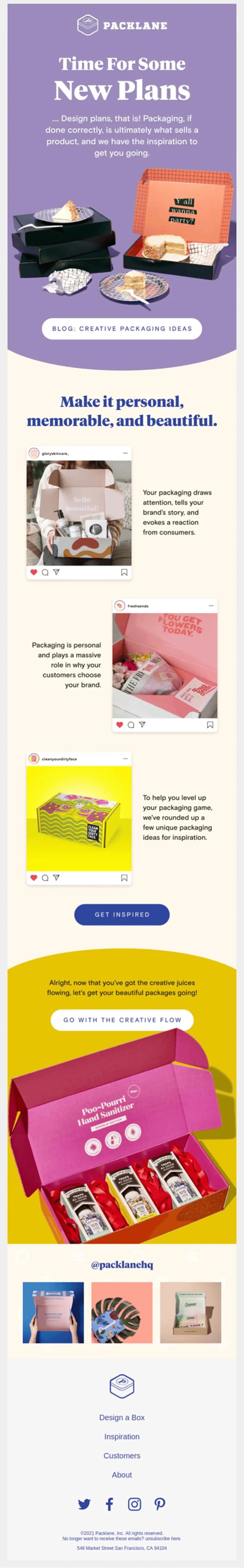 Some brands may choose to send a monthly newsletter, while others may have enough happening that they can send a bi-weekly update. If your brand has a heavy blog presence, you may choose to isolate new blog posts as an entirely separate message pillar that stands alone.
