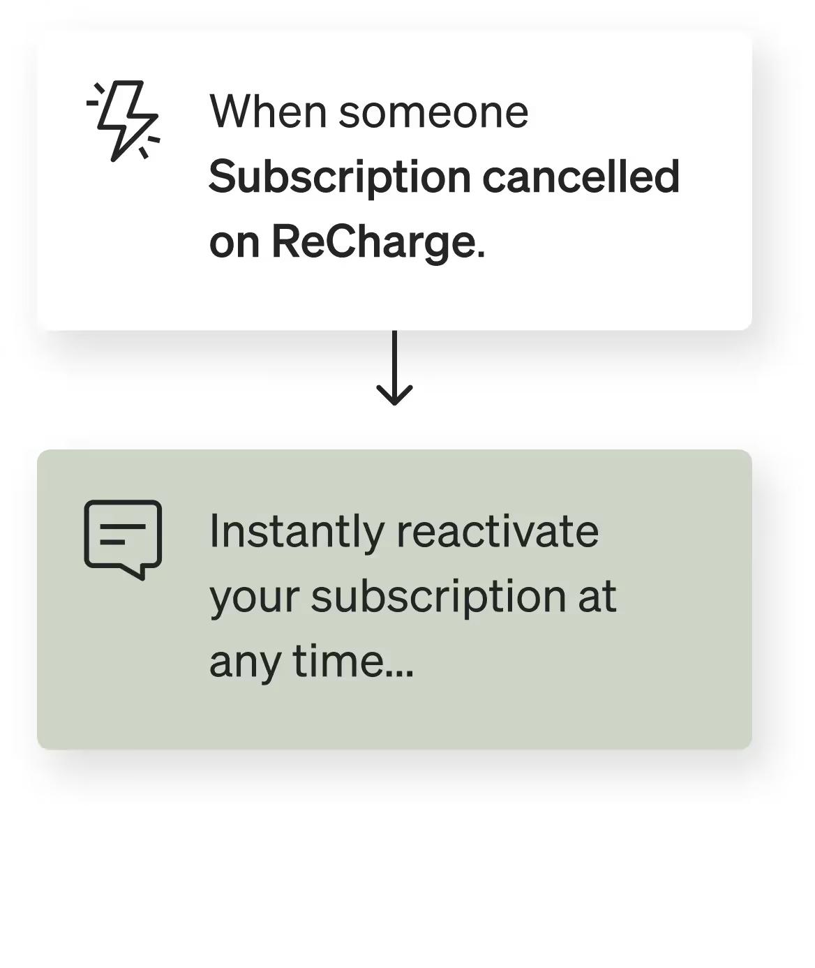 - Text quick action links that let customers easily perform a variety of actions, like reactivating their canceled subscription.