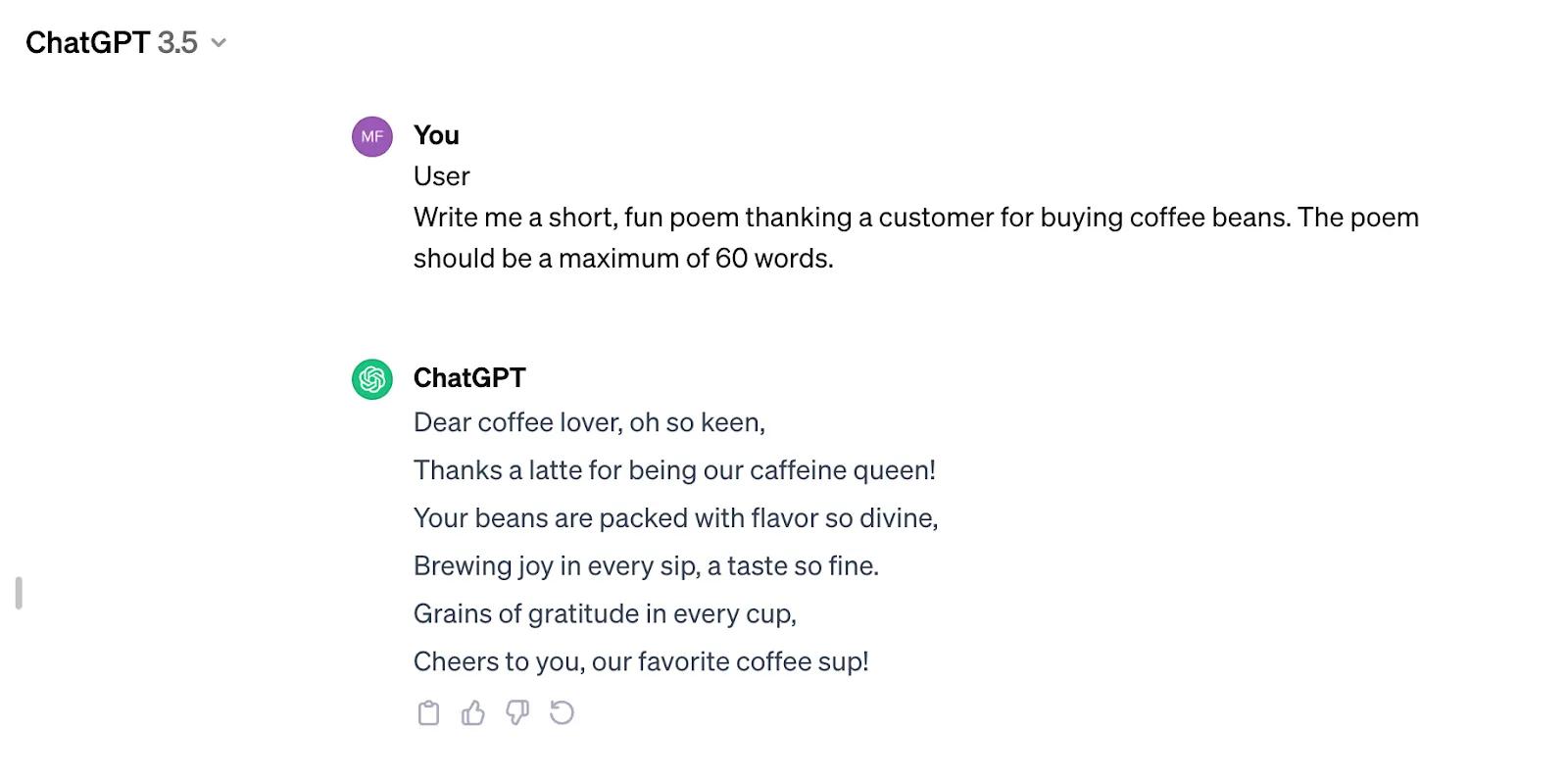 Beantown’s marketing team was playing around with ChatGPT and discovered its ability to write fun, short poems that can be completely customized. Instantly, they thought of including these poems in confirmation emails when VIP customers make purchases.