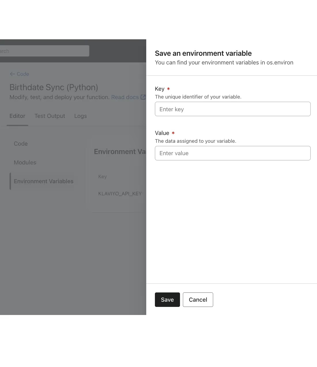 Environment variables exist in the scope of your function. You can set them here, then access them in your code.