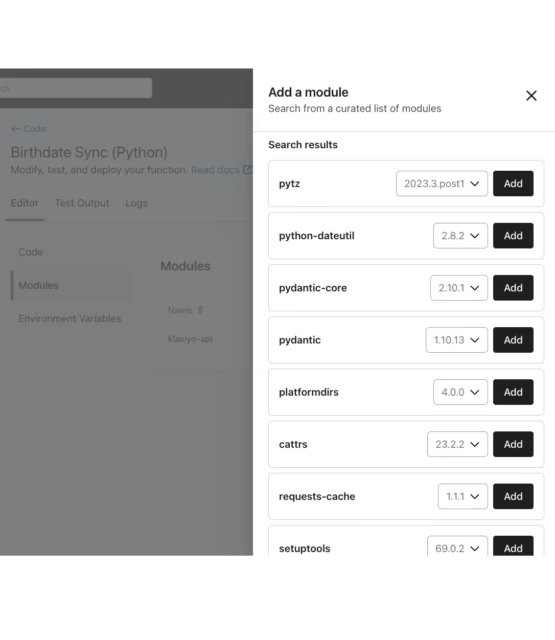 Once a module has been added, you can import and use it in your function. Modules need to be added separately for each function.
