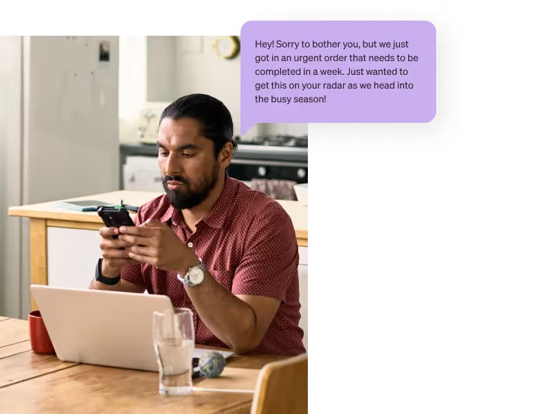 Bola’s Baked Goods primarily uses Slack for internal communications. Whenever an urgent order comes in, whoever sees it first sends a Slack message to their head bakers to make sure the bakers are prepared and can prioritize and delegate appropriately.