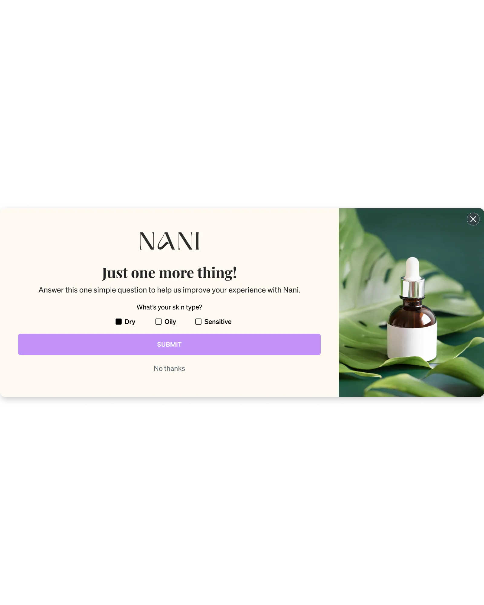 Nani zeroed in on what’s important to their customers: finding the right products for their skin type. They started with a goal, and worked backwards from that to decide what type of data they wanted to collect and at what stage of the customer journey.