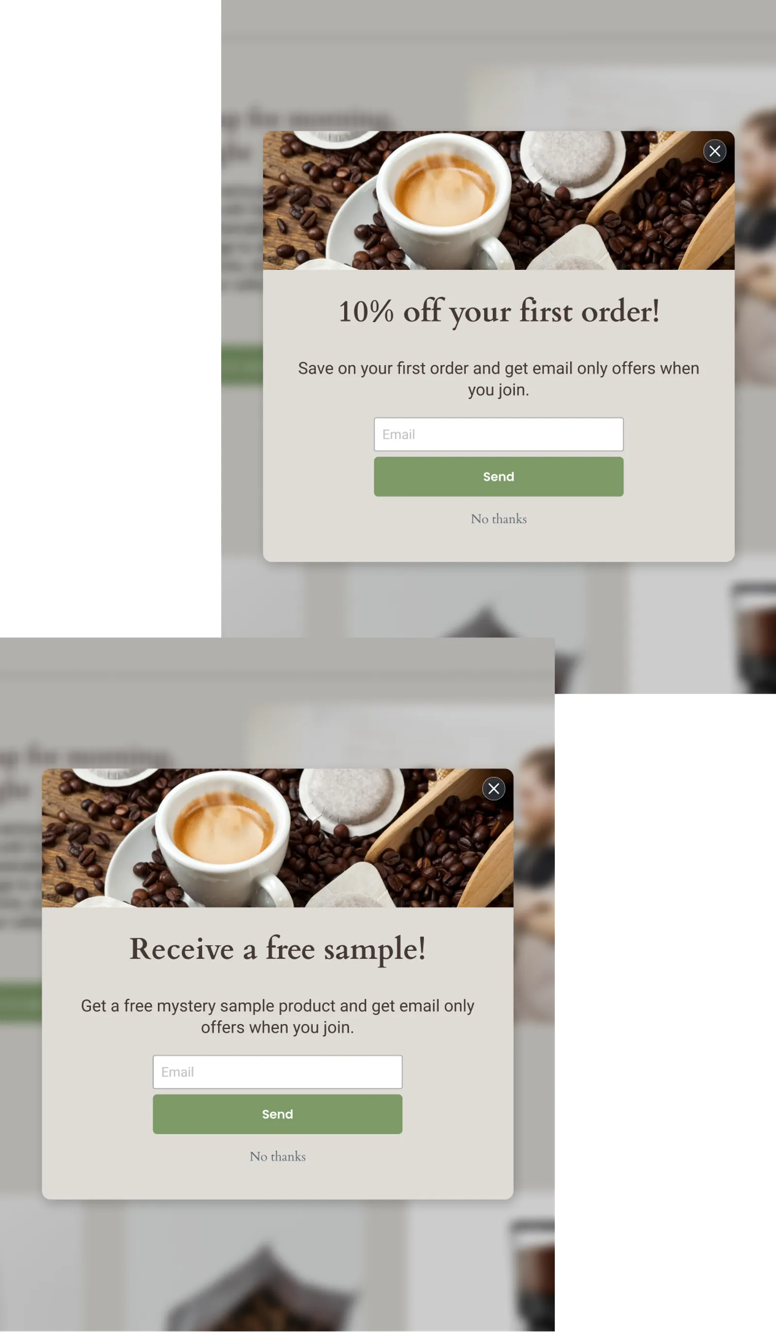 - Incentive variation 1: 10% off your first order