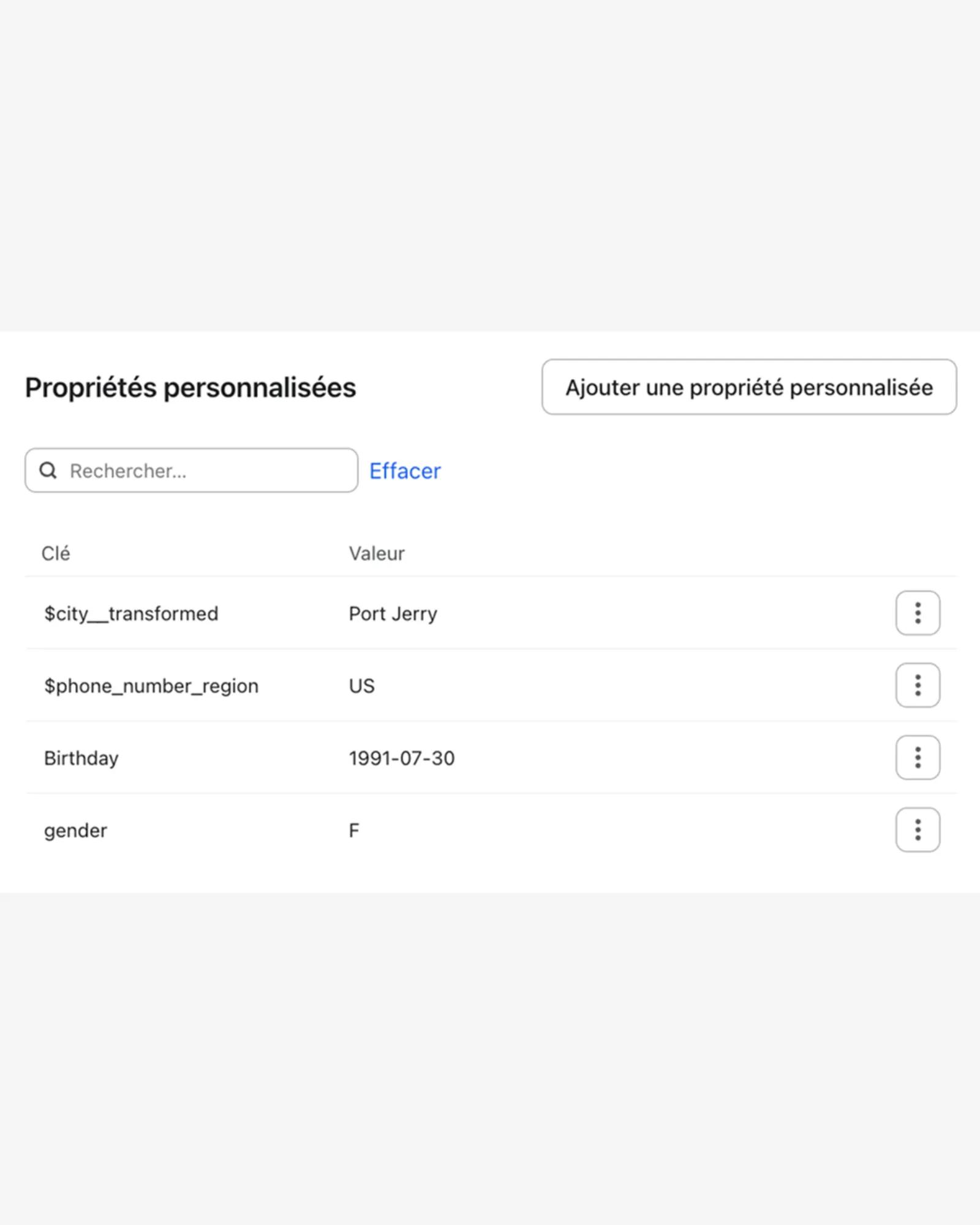 Remarque : les propriétés sont sensibles à la casse dans Klaviyo. Maintenez donc une cohérence entre les majuscules/minuscules et l’orthographe dans l’ensemble de votre compte. Vous préserverez ainsi l’intégrité des données et la segmentation sera plus précise.