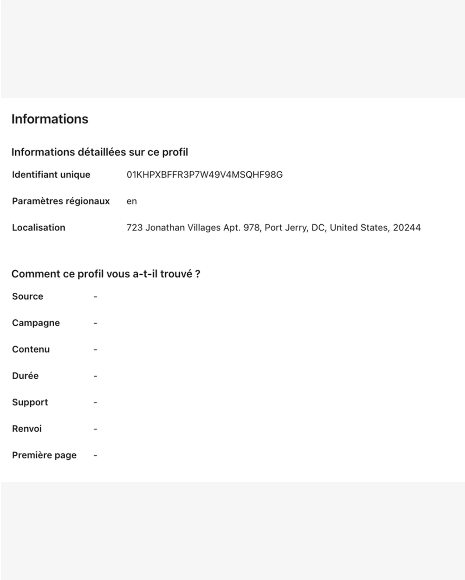 Lorsqu’un visiteur interagit avec votre site web ou valide un formulaire d’inscription, Klaviyo ajoute les informations le concernant aux propriétés par défaut.