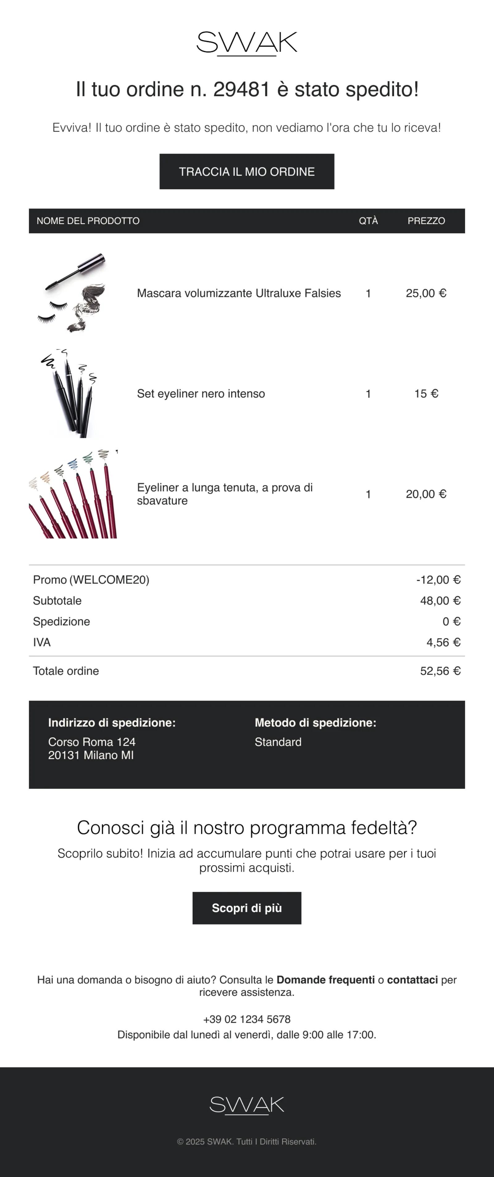 Esempio: invia dei messaggi per carrello abbandonato o post-vendita a chi acquista nel tuo negozio online e mostra un blocco di testo per proporre il tuo programma fedeltà a chi non si è ancora iscritto. Per potenziare i tuoi programmi fedeltà o referral, crea dei flussi per dare il benvenuto ai partecipanti e assegnare i premi.