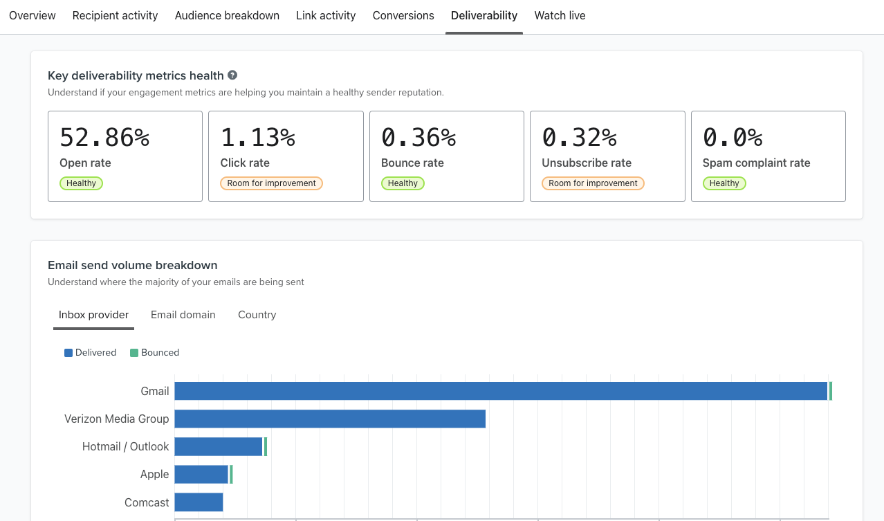 View full list campaign performance on the Deliverability tab