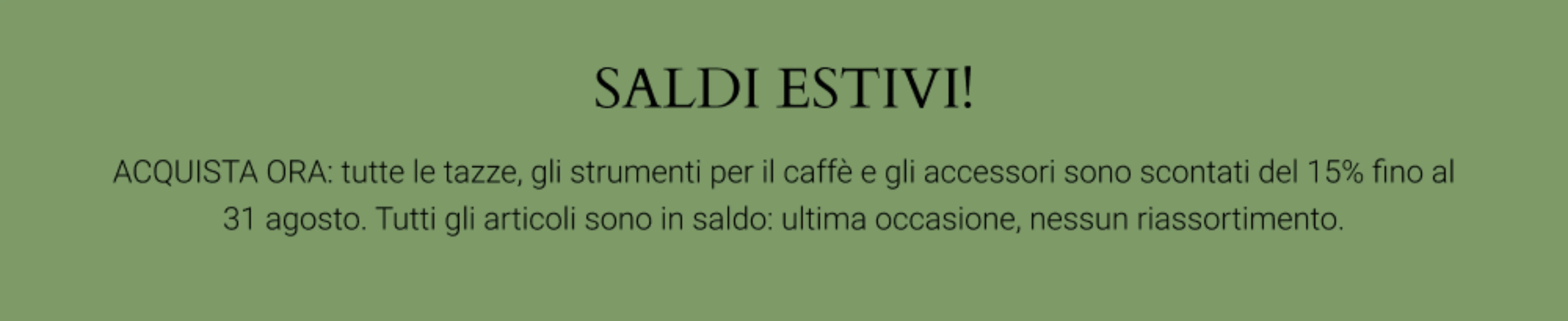 Quando aggiornare: tieni aggiornato questo blocco con le tue offerte promozionali più recenti (spedizione gratuita, omaggio con l'acquisto, sconto del 30% fino a esaurimento scorte ecc.)