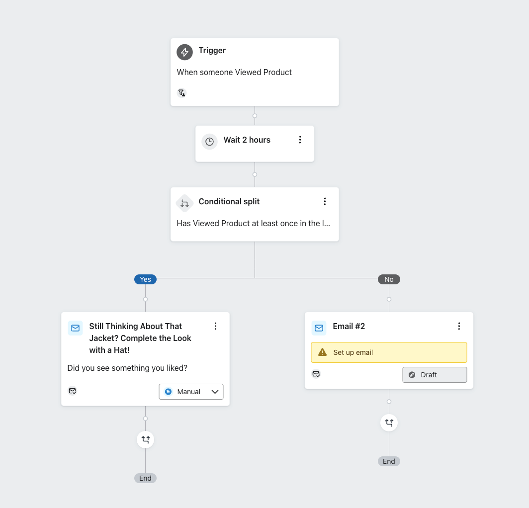 1. Personalize your browse and cart abandonment flows by adding a trigger split for customers who viewed your best-selling product.
