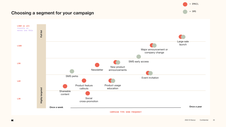 Once you and your client have defined your campaign pillars, build out a sending cadence that you can use as a general guide for each month. If your pricing structure is based on a specific number of campaign messages per month, use that as a starting point. Just like email, we recommend setting up a cadence that communicates most frequently with the most engaged subscribers, and widens out to less frequent communication with those who do not engage as often. See the graphic below to understand how you can coordinate text message campaigns with email campaigns in an intuitive way.