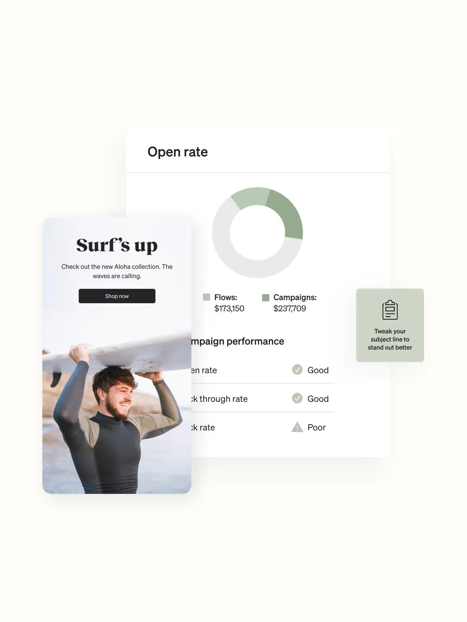 - Needs improvement: A low open rate could indicate that your subject line should be tweaked to stand out better in an inbox or that you should instead target a more engaged segment of your audience.