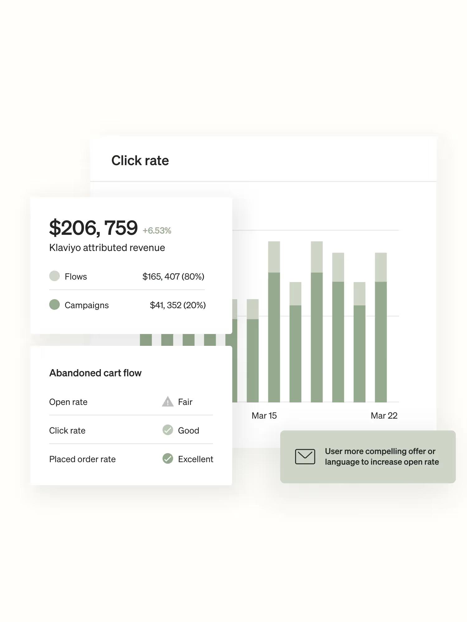 Revenue is a measure of your company’s profit, including your owned revenue in Klaviyo as well as revenue gained via channels not directly in your control. To increase revenue, you can: