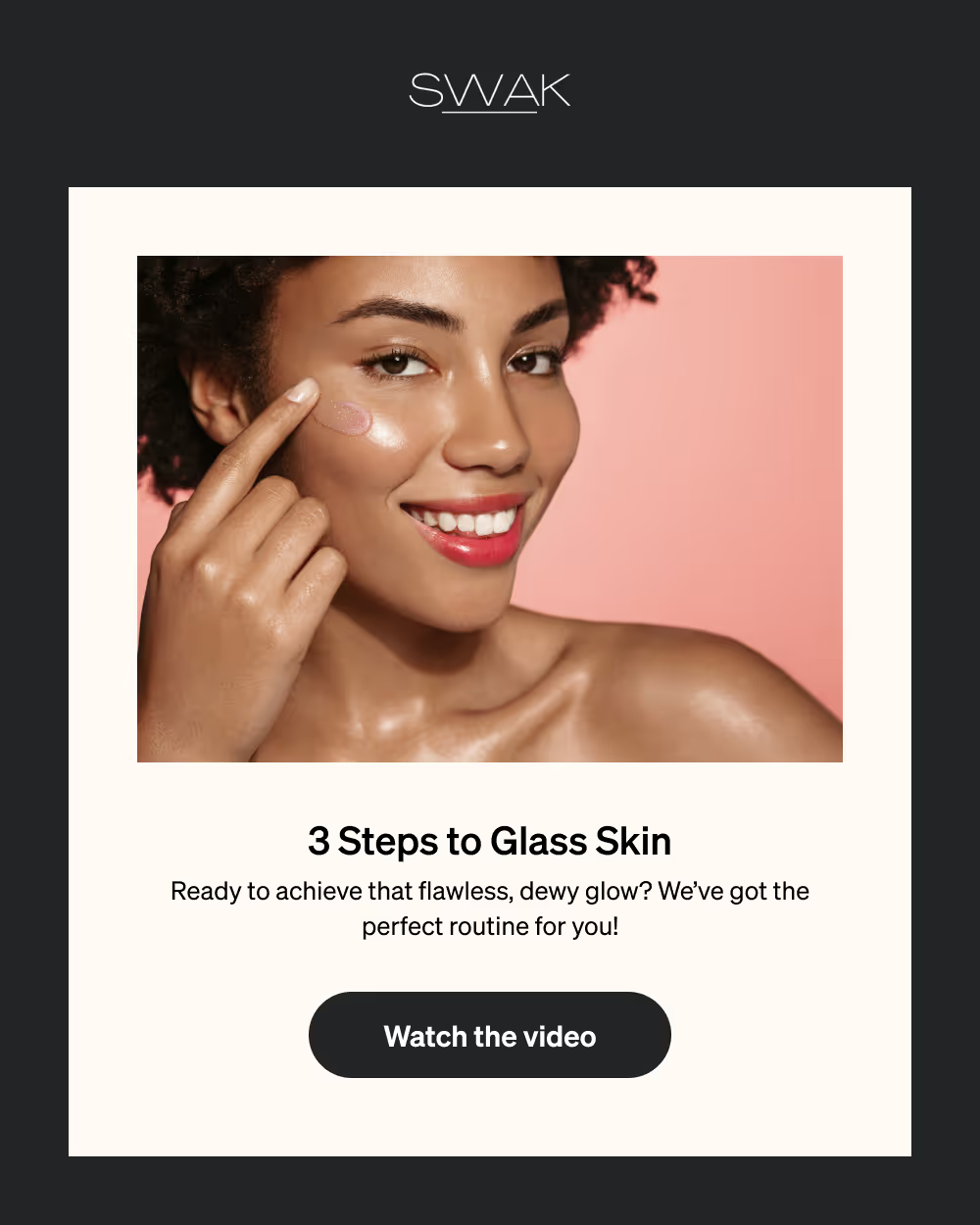 Twice a month, SWAK sent bite-sized campaigns on maximizing their lightweight products. Think "3 Steps to Glass Skin" tutorials and blog posts highlighting blemish-busting ingredients.