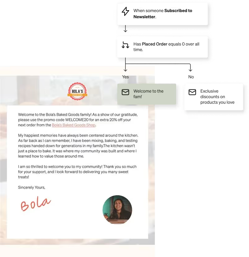 Bola's Baked Goods set up a welcome series to reflect their brand and draw customers to a first purchase.