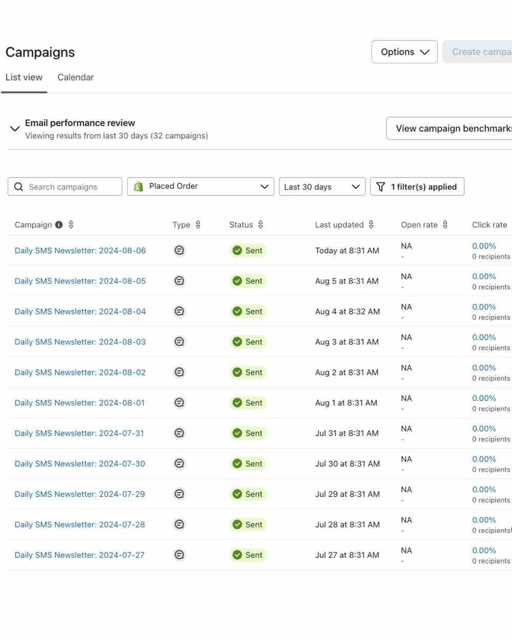 The campaign list page provides a high-level understanding of how each campaign is performing.