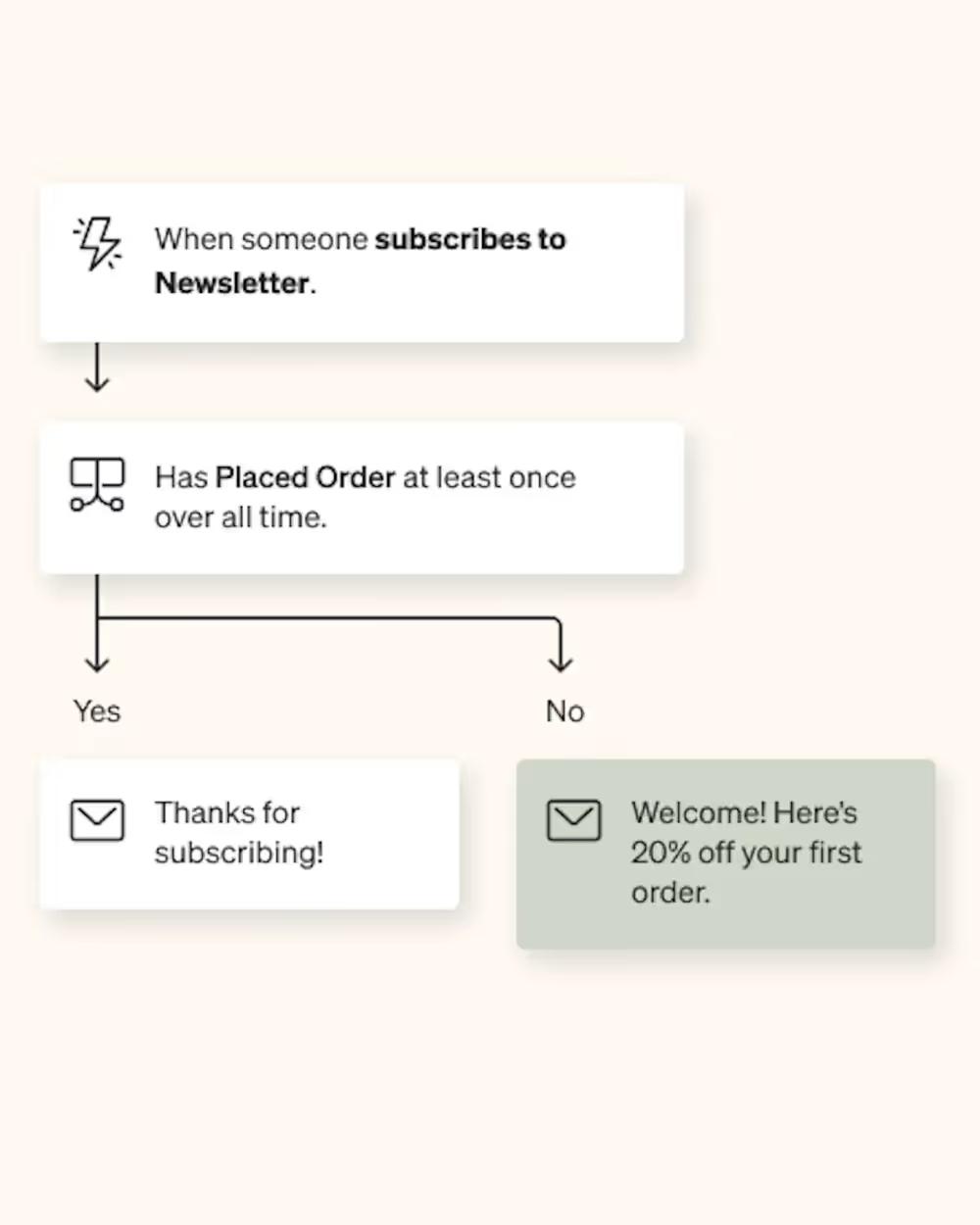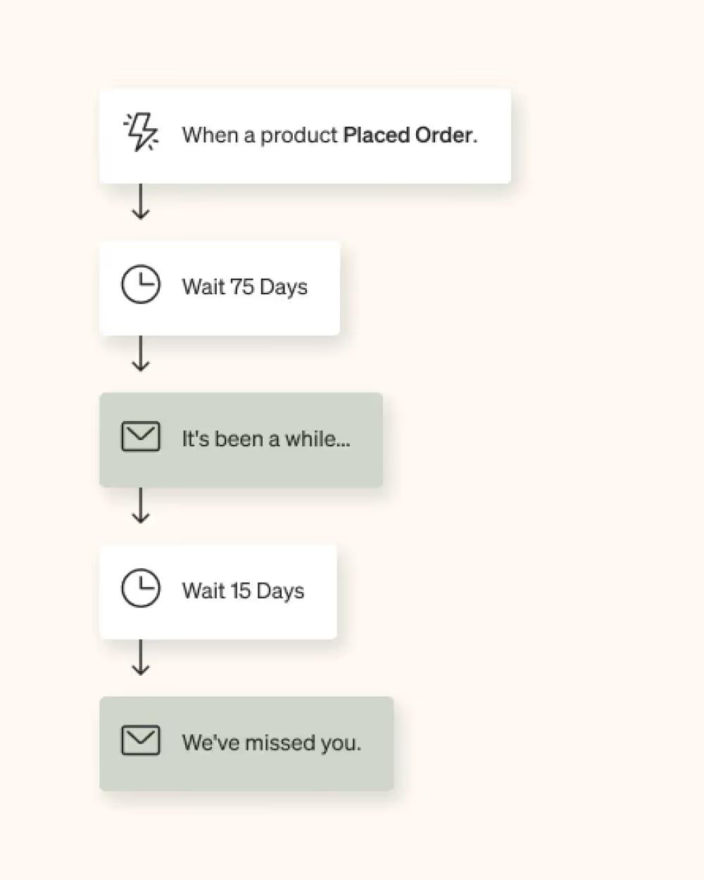 This flow is customizable based on the products a customer has purchased and how many purchases they have made.