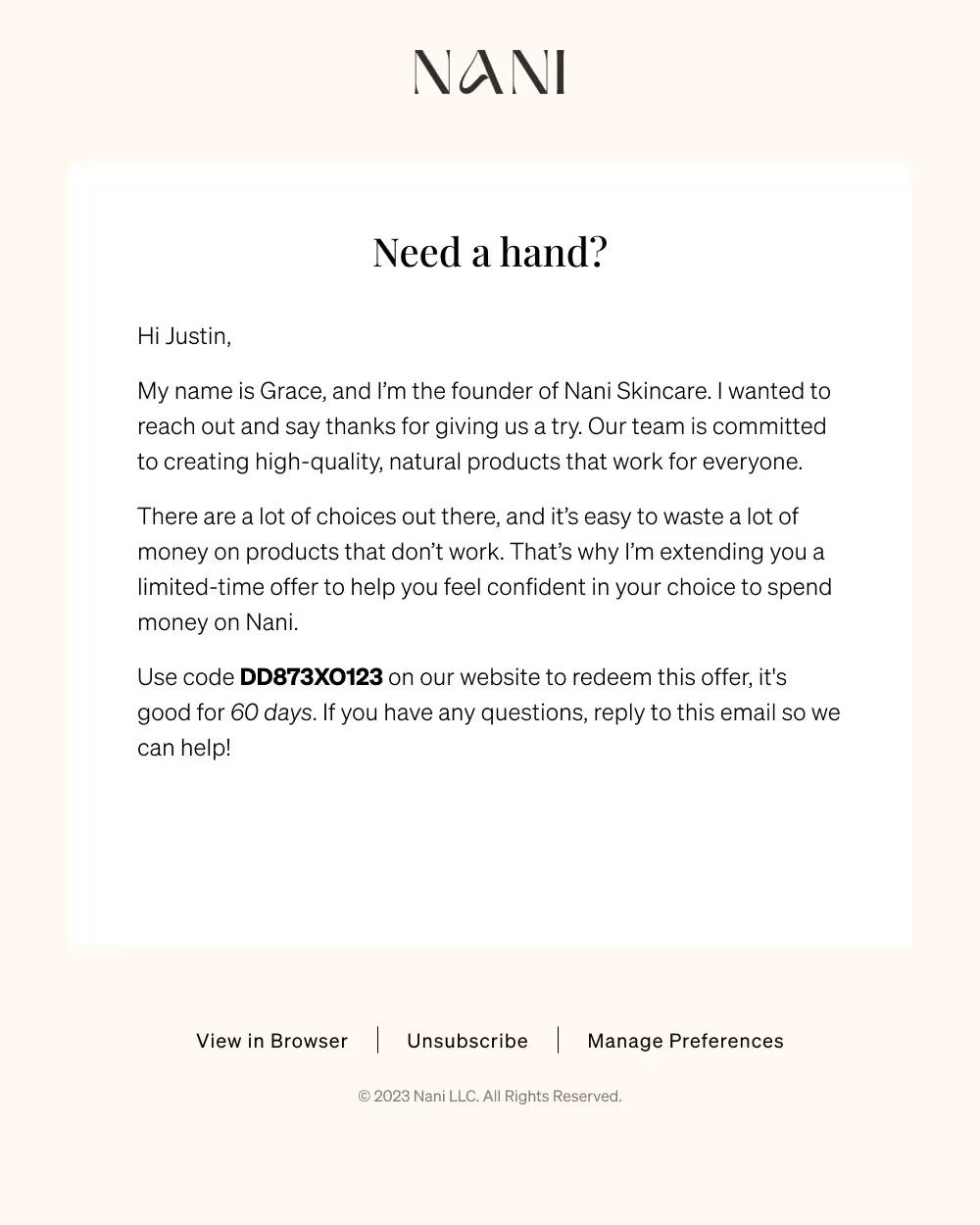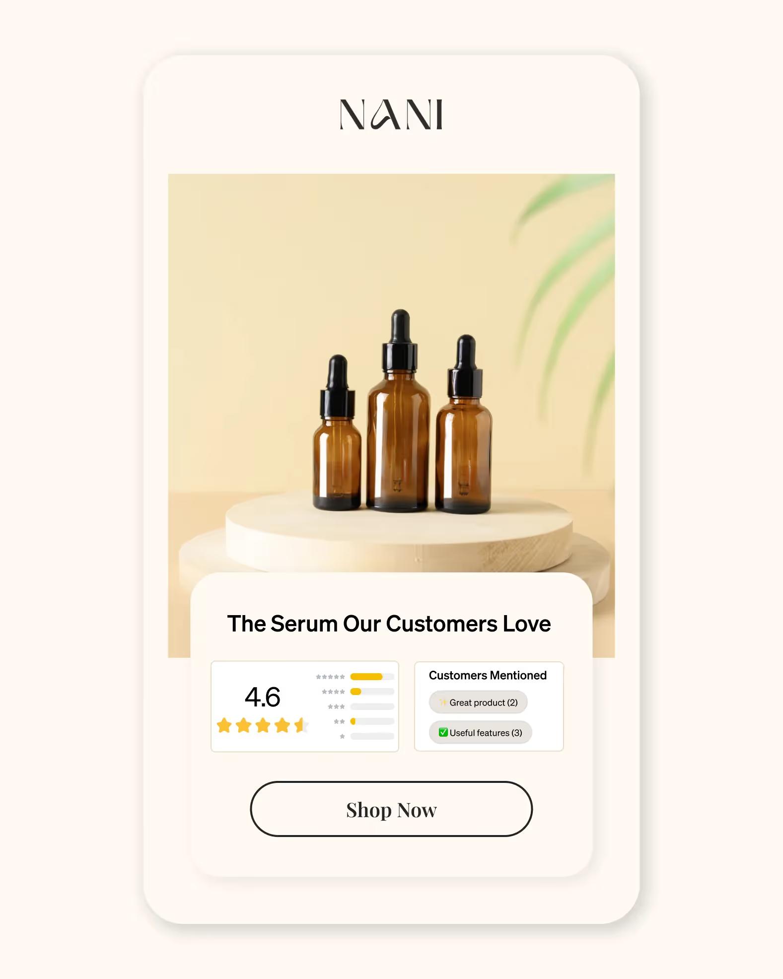 User-generated content like product reviews, social media posts and testimonials are an incredibly powerful persuasion tool. Build trust with new customers by featuring UGC in your welcome series messages.