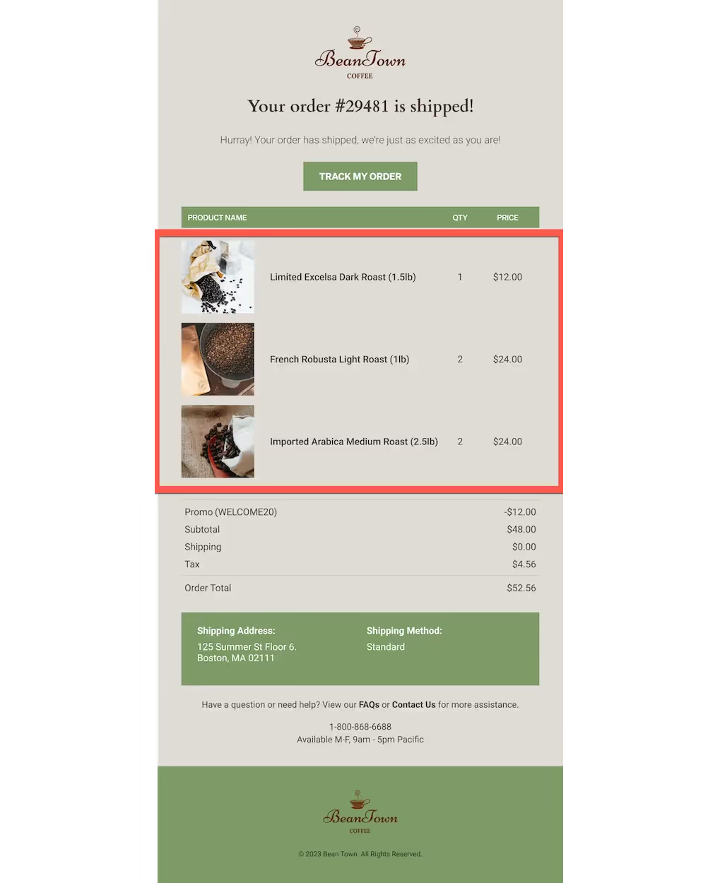 A common use case for a dynamic table is displaying data about every product in a customer’s checkout or order. Klaviyo’s pre-built abandoned checkout and order confirmation flows include dynamic tables pre-populated with relevant information.