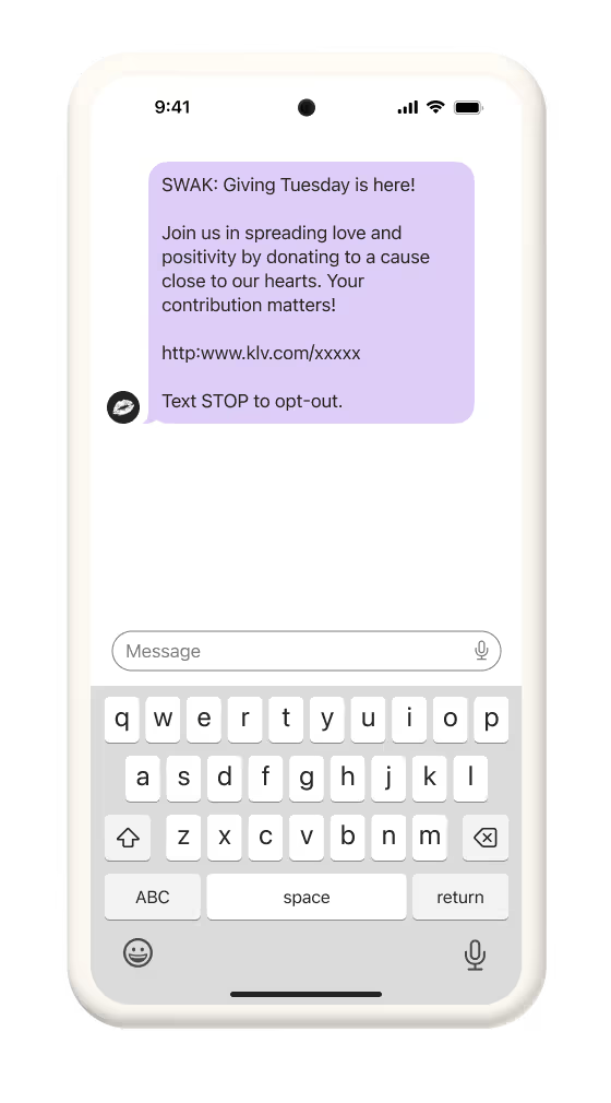 - Giving Tuesday text: Craft a text for recent shoppers to encourage subscribers to contribute to a cause.