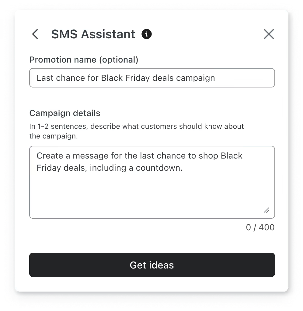 To generate more relevant text messages, start by selecting the Promotion campaign type for the following prompts.