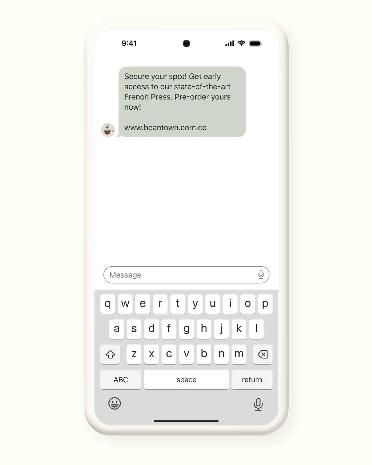Text: Attention coffee lovers! Be the first to experience our state-of-the-art French Press! As a valued text message subscriber, you now have exclusive access to pre-order this amazing product before anyone else. Secure yours today: