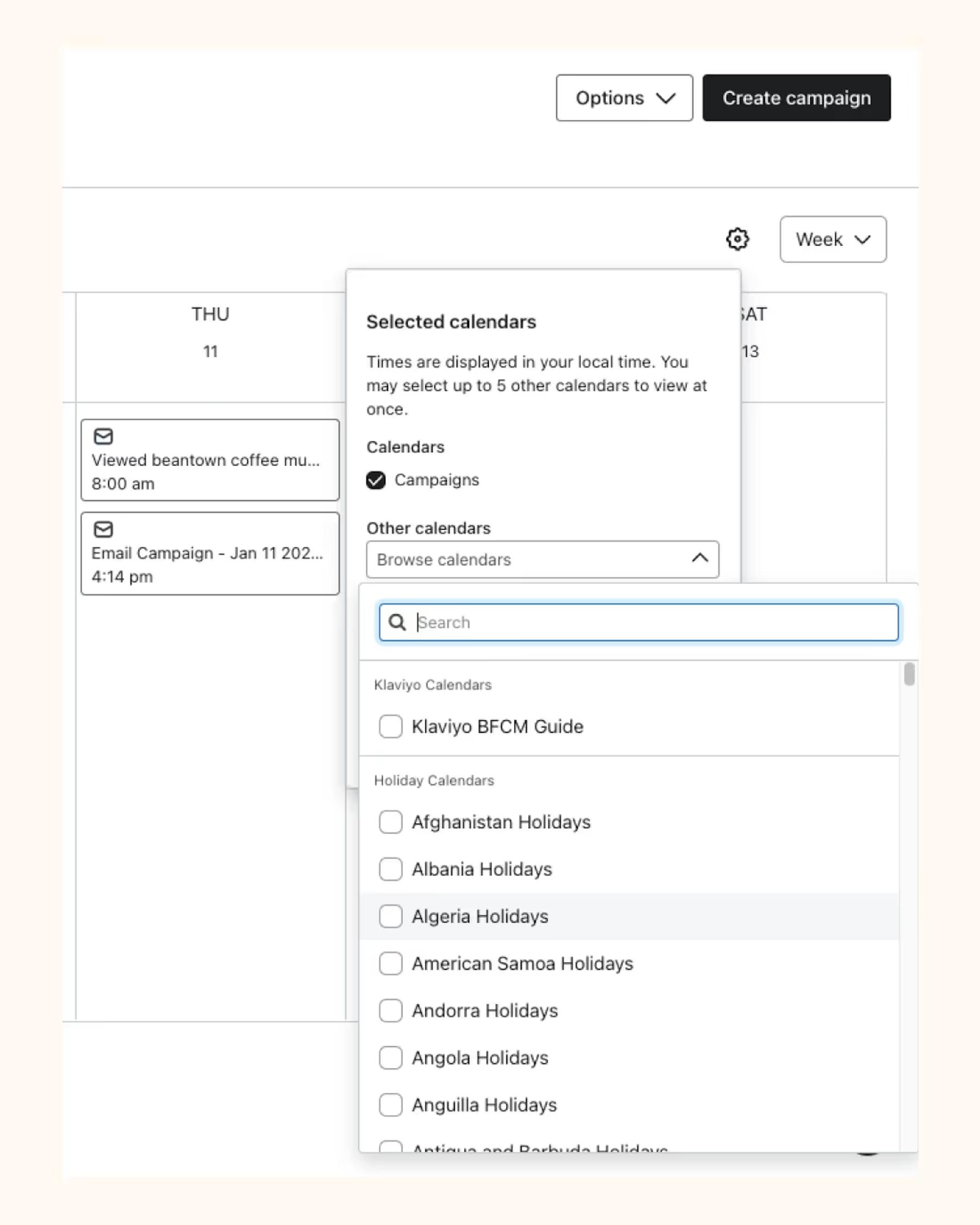 Use the Klaviyo campaign calendar to streamline your campaign content creation and improve your overall marketing strategy. In the video below, you’ll learn 2 ways to visualize your campaigns and identify key tools that help you filter, sort, and analyze your campaigns.