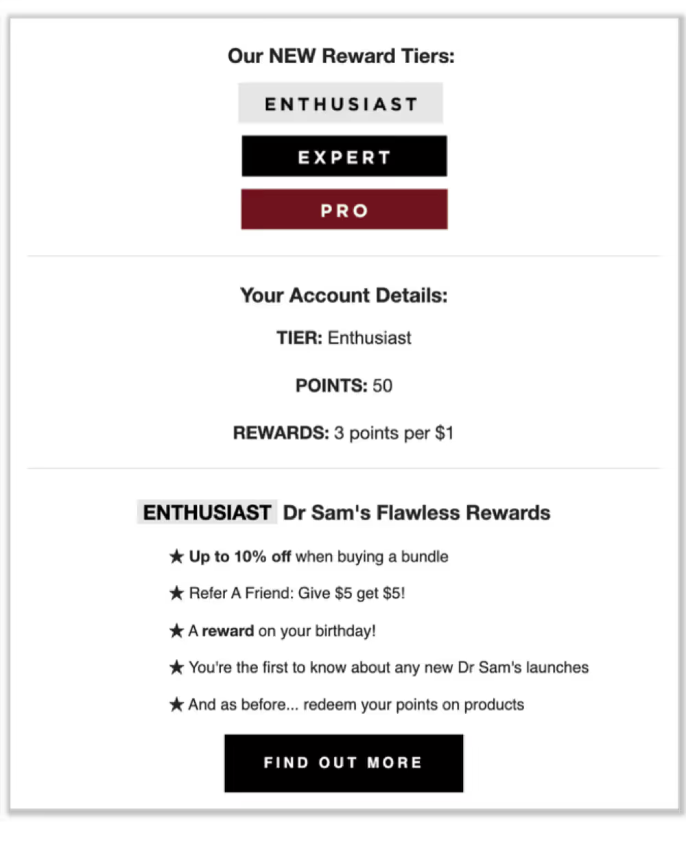 For example, Dr. Sam's created a VIP segment of customers who redeemed rewards points and sent an exclusive double points offer.
