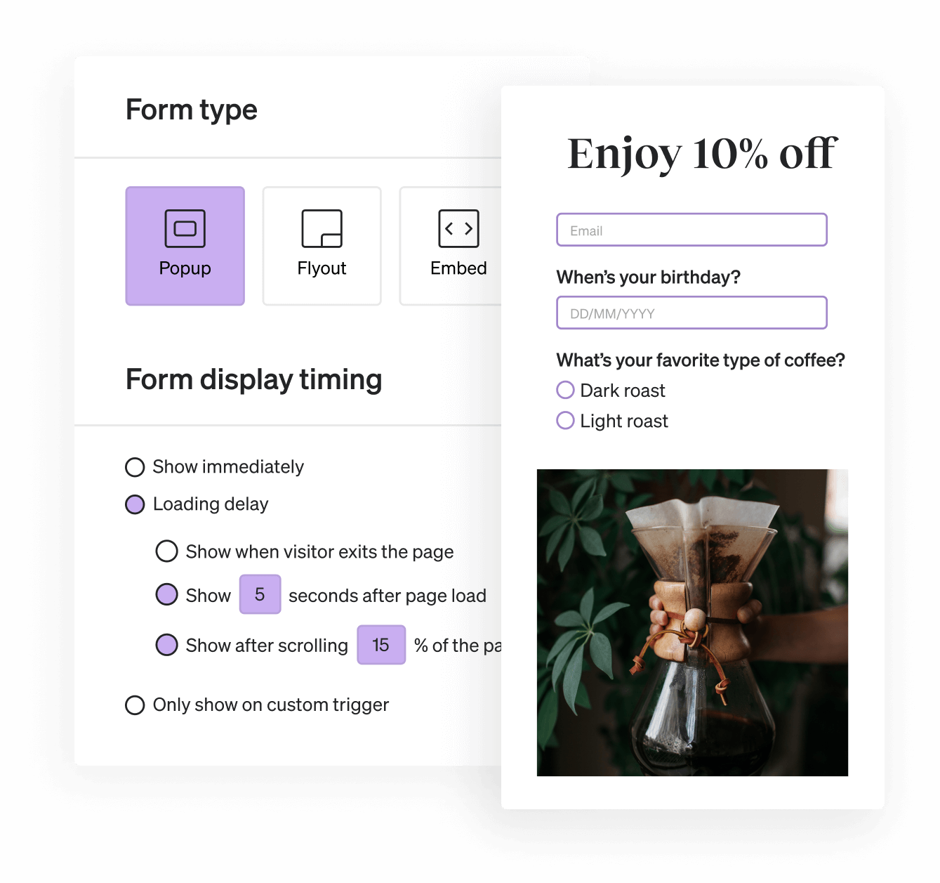 Why is this useful? Think of your own experience as a customer shopping online. When you immediately see a pop-up on a website without knowing much about the products or the brand, it’s pretty unlikely that you’ll sign up for anything until you’ve had a chance to explore. With no form teaser, you’ve lost the conversion.