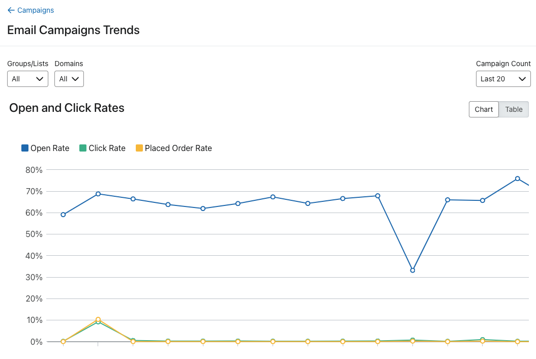 If you're in the early stages of growing your business, you might be wondering which campaigns are driving the most engagement and revenue. Understanding how each campaign performs will help you refine your strategy and focus on the ones that are most effective. For this reason, keep an eye on your campaigns trend report to get a big-picture view of performance over time.