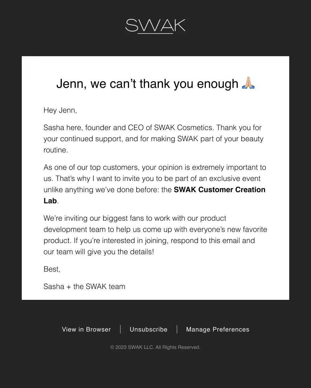Round up all of the customers who love you, and dig into why. Your best customers will be a great indication of the types of products they want to see you offer next, the most impactful improvements that you could make to your current offering, and upcoming trend shifts that may be on the horizon.