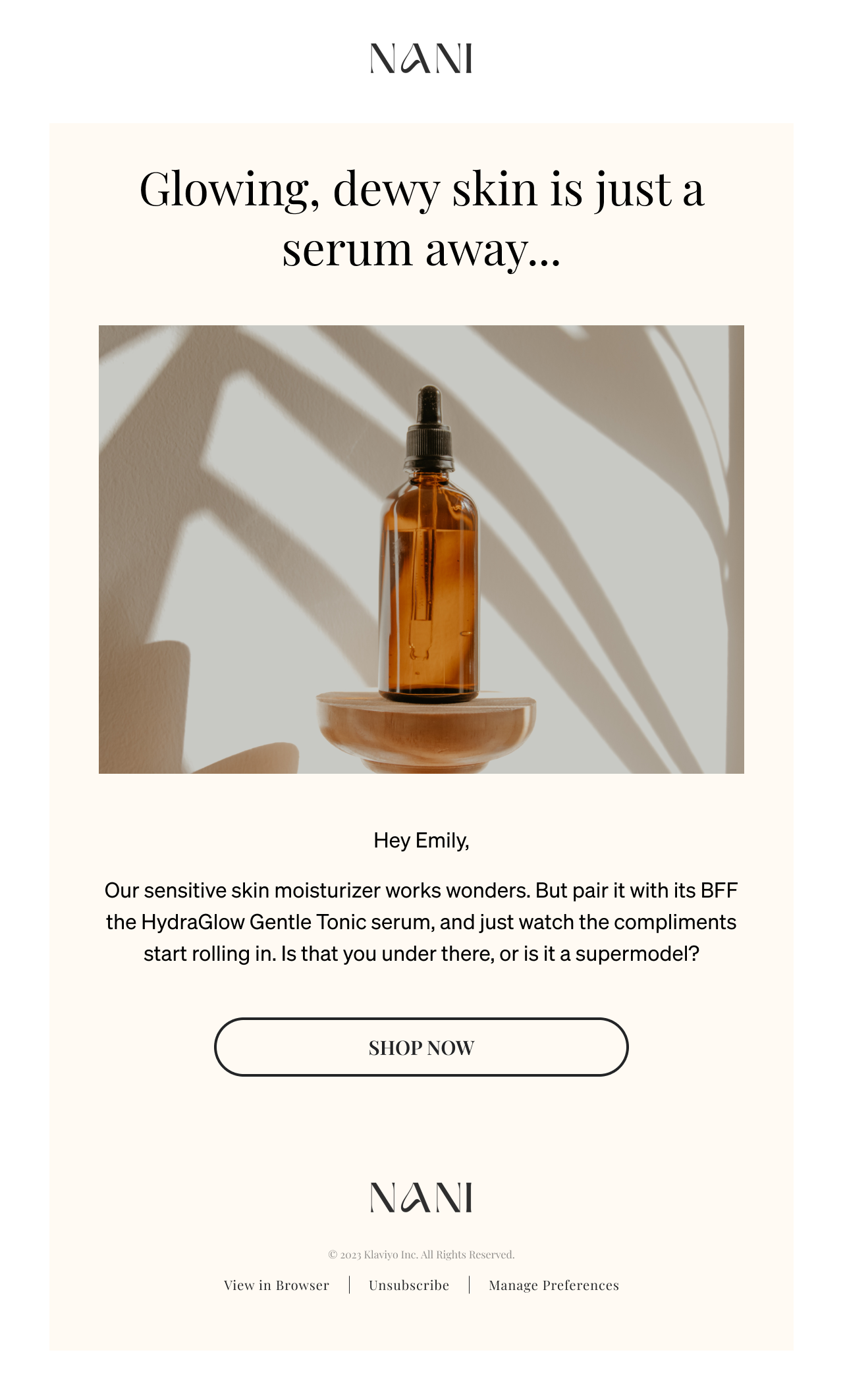Segment: recent reviewers who rated Nani’s sensitive skin moisturizer 4 or 5 stars, but haven’t purchased their complementary serum