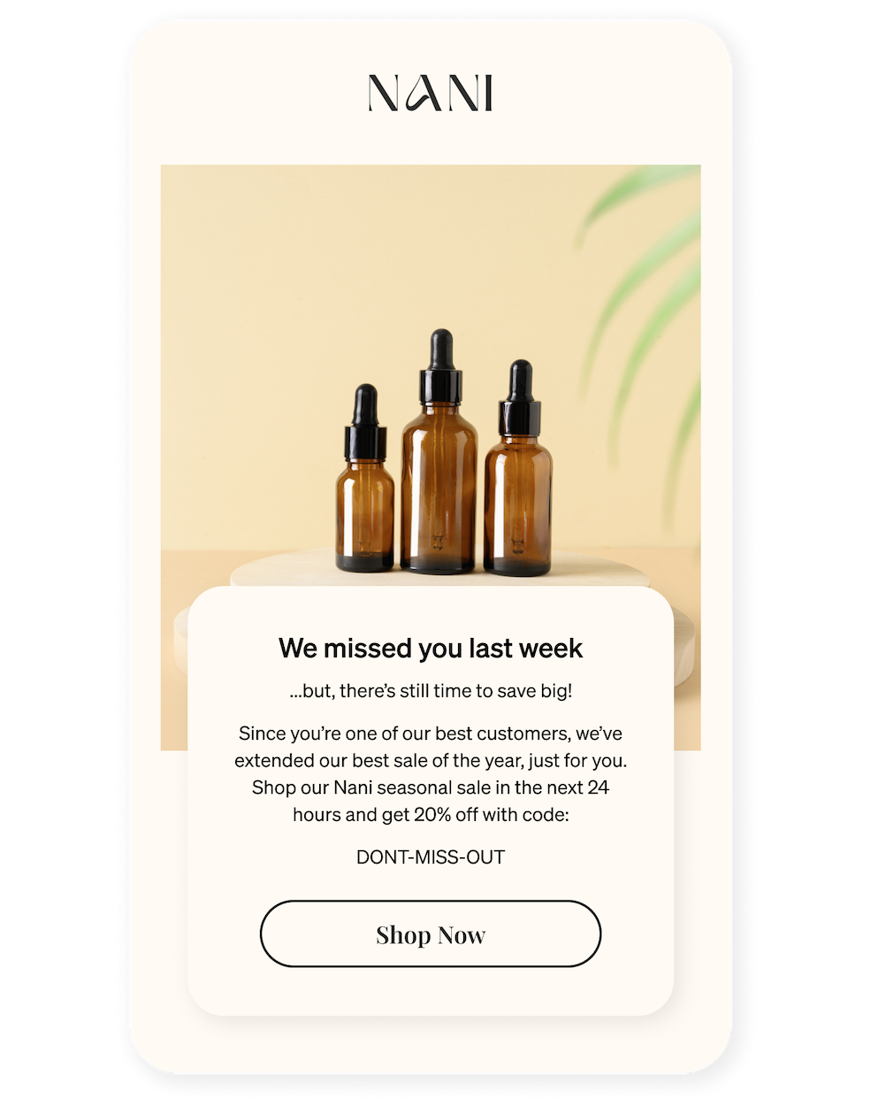 Why: These shoppers may just need an extra nudge to go from a casual browser to a committed customer. Spur a purchase with targeted messaging after BFCM.