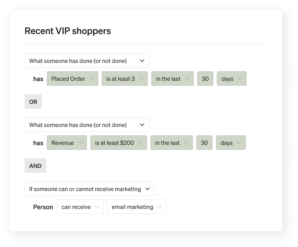 Who: VIPs are high-value customers. If you already had this segment in your account, it may have grown during BFCM, since shopping volume is often higher.